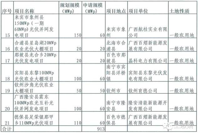 参考文件:广西省能源局《关于公布关系光伏电站储备项目名单的通知》(桂能新能〔2016〕12号)