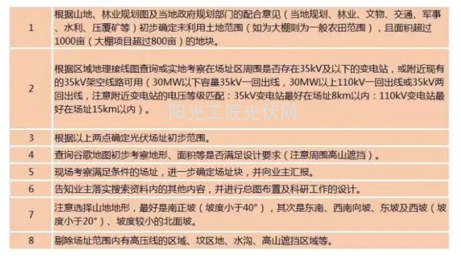在进行山地光伏电站选址时,具体流程如下表所示: