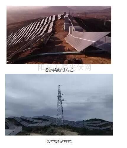 本方案经济型一般方案,一般采用钢杆形式架空敷设,主要适用于山体情况较复杂,且光伏阵列布置分散的情况。