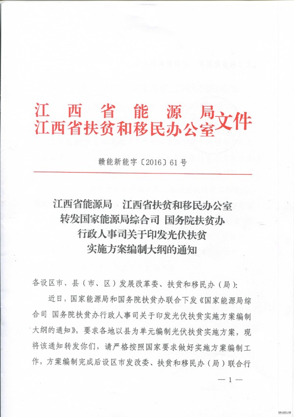 近日,江西能源局、扶贫和移民办公室转发了国家能源局《关于光伏扶贫实施方案编制大纲的通知》,对辖内的光伏扶贫项目进行梳理和统一管理。