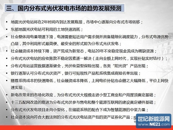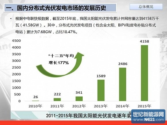 新能源限电问题一段时间无法解决,主要是清洁能源发展速度太快包括建设和并网速度,而电网无论是交流还是直流建设调试需要非常长的时间,中间时间上的不匹配导致更多新增加的应用得不到送出能力的匹配,所以限电怪局一时半会解决不了。所以目前保持现状把能解决的先解决,而更多的增量在东部。东部地区好处在于配网比较坚强,它是负荷中心,这些点是取胜西部,这些点持续的增量来源不在用电量上升,社会经济不再这么强烈增长进入新常态,后面在于后面能源匹配效率,微网释放,能源匹配、充电桩、电动汽车、配网改造、 能源互联网推广、 自己成本下降都是分布式光伏突破瓶颈的要素。当然除了这些我觉得更重要还是供给侧,就是上分布式源动力包括政策导向,我不再需要什么政策了,而是需要现在政策落实,我们就满意了。这些其实并不是特别难,只需要国家统一战略部署,包括政府整个信用体系与我们结合起来,我想只要把现在政策能够充分发挥起来,分布式突破是很容易出现的。
