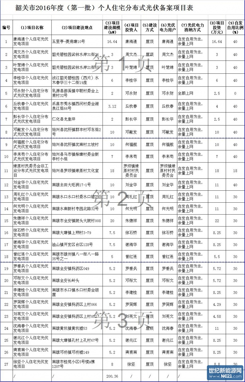 附件:韶关市2016年度(第一批)个人住宅分布式光伏备案项目表韶发改函[2016]35号附件