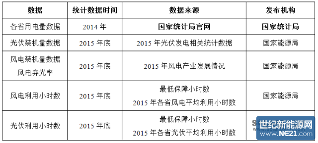 说明:根据《关于做好风电、光伏发电全额保障性收购管理工作的通知》中的规定:限电地区的发电小时数为最低保障收购小时数,未做规定的则全额收购。因此,文件中规定了全省的风电、光伏最低保障收购年利用小时数时,未规定的,则采用2015年实际项目的平均值。