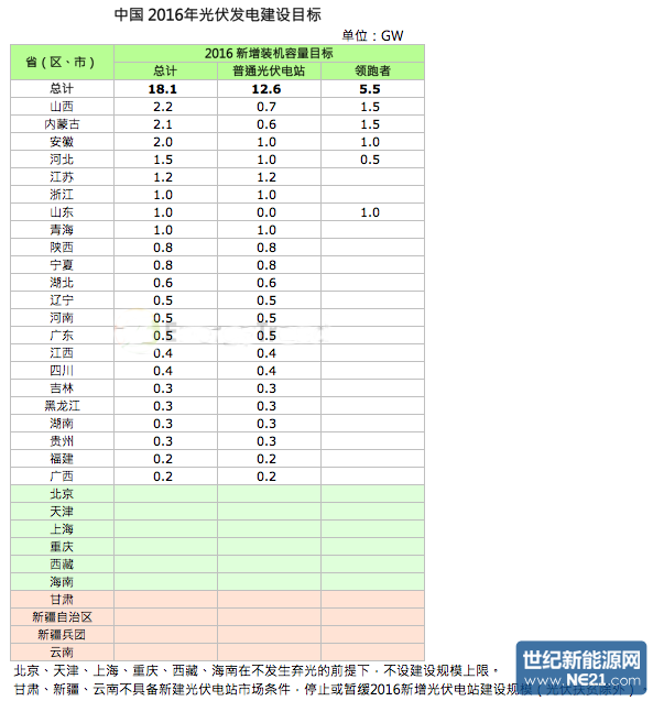 《通知》所下发的18.1GW指标,加上将另行公布的光伏扶贫(注一)指标,预计中国全年光伏指标量会在20GW左右。相比2015年的指标17.8GW,18.1GW虽有微幅成长,但2015年有另行增补5.3GW以及大同领跑者计划1GW,故今年实际指标总量相比去年稍有衰退。若后续不像去年有另行的增补,这将是中国大力推展太阳能以来首次出现目标安装量衰退的情形。