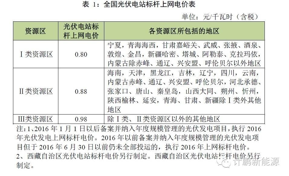 光伏电站:根据各地太阳能资源条件和建设成本,将全国分为三类标杆上网电价区,相应制定光伏电站标杆上网电价。
