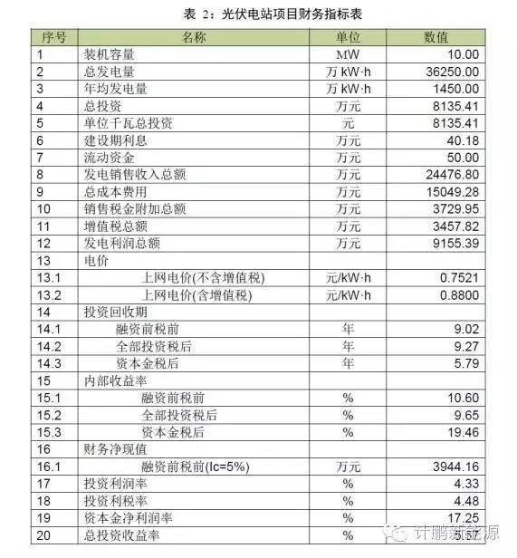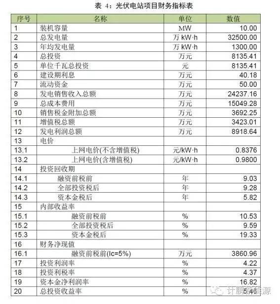假设项目装机容量10MW,年利用小时数1300小时,依据以上条件测算,在没有政府补贴的情况下,该项目融资前税前收益率在10.53%之间,投资回收期9.03年之间.