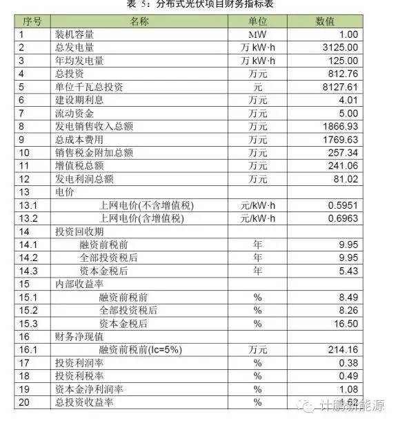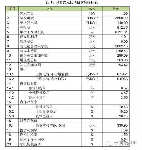 根据山西电网销售电价表,项目电价采用一般工商业电价:0.6963元/kWh,项目装机容量为1MW,年满发小时数为1400h,依据以上条件测算,项目融资前税前收益率在10.43%之间,投资回收期在8.07年之间,项目具有一定的盈利能力。