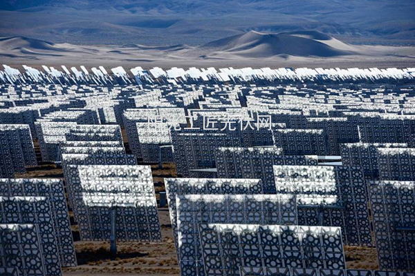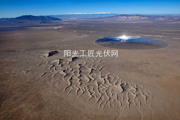 Crescent Dunes属于聚光光伏电站,利用上万面镜子把太阳光反射到中央的熔盐塔中。在塔中,汇聚起来的太阳光把27万千克的液态盐加热到566摄氏度以上。盐能够保留住高水平的热量,某种程度上就发挥了热电池的作用。当出现电力需求时,电力公司的工作人员就利用熔融盐储存的热量来驱动传统蒸汽涡轮机。整个过程都做到了零碳排放。反射镜排布区域的直径达2.7公里,而所有反射镜的总面积达120万平方米。