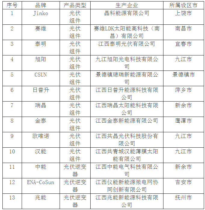 10家组件、3家逆变器企业入选江西能源局光伏项目推荐目录