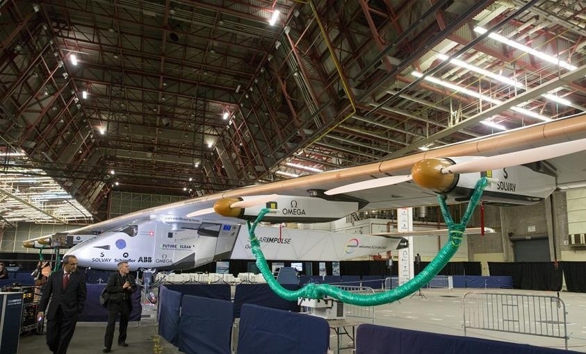 这是6月13日在美国纽约肯尼迪国际机场拍摄的全球最大太阳能飞机“阳光动力”2号。新华社记者李木子摄