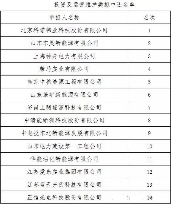 索比光伏网讯:日前,科诺伟业入选山东省滨州市光伏扶贫项目企业库,且在投资及运营维护类入库企业中,排名第一(报名44家);在工程实施类入库企业中,排名第三(报名23家)。