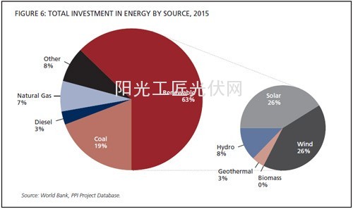 图:民间向新兴市场国家等的能源领域基础设施投资(2015年)详情(出处:世界银行)项目件数上,2015年全部投资300件,其中能源领域有205件。按件数计算,远远超过运输和交通的55件及上下水道的40件。