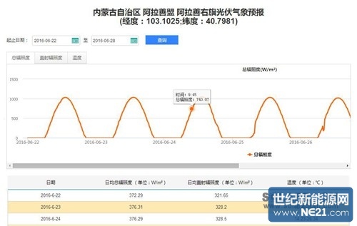 据悉,该气象平台旨在为全国新能源行业用户提供专业的风力、光伏气象预报数据。强大的在线平台可以帮助风电场和光伏电站更完善、更便捷地了解与掌握光伏、风电系统的发电效率。
