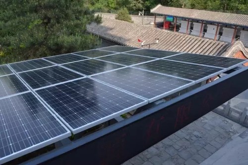 向来青灯古佛的寺庙,引进先进的太阳能发电系统,也是现代感十足。位于北京云居寺的这套太阳能发电系统是由高效单晶组件制造商乐叶光伏捐建的。系统采用分布式光伏发电设备,使用的光伏材料均采用高效单晶组件构成。