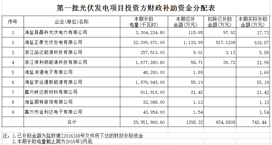原标题:海盐县财政局 海盐县经济和信息化局关于拨付第一批光伏发电项目投资方财政补助资金的通知