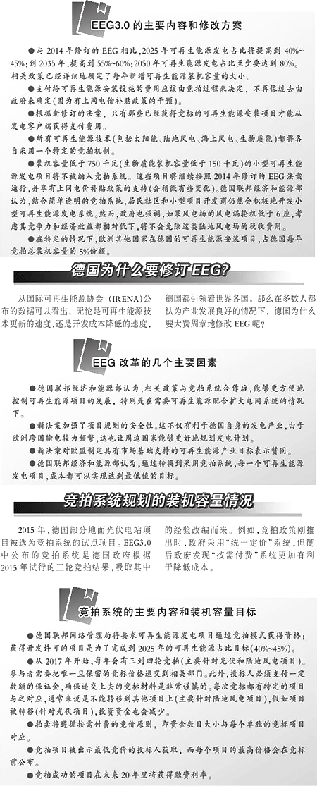 本月,德国内阁同意颁布新修订的EEG草案,并公布新法案中主要增加和修改的内容。据悉,若该法案被两个议会内阁院审查通过,就完成了修改现法案的改革流程。