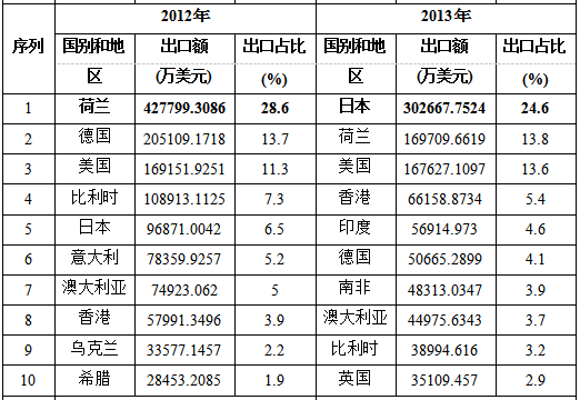 表2-6 2010年~2015上半年我国光伏电池出口主要目标国别和地区
