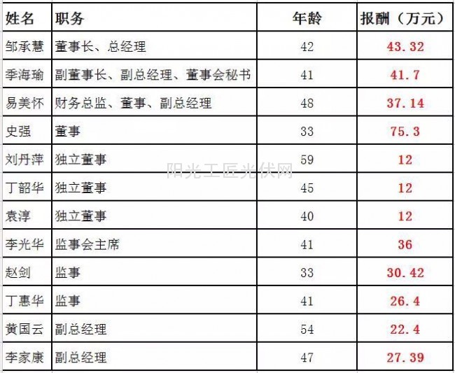 十三、2015财年 海润光伏 部分高管报酬表