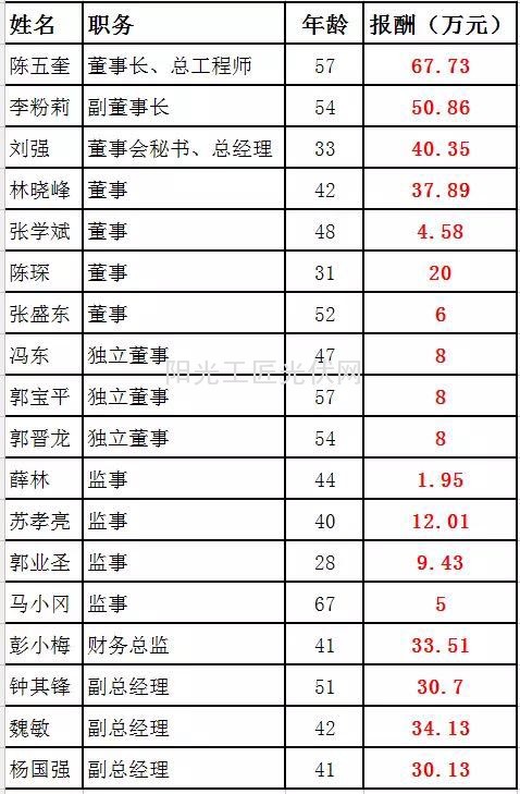 六、2015财年 阳光电源 部分高管报酬表