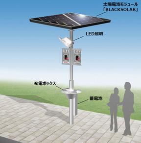 太阳能路灯设置有BLACKSOLAR组件以及LED照明设备,并搭配蓄电池以及行动装置充电器,可完全独立于电网运作,亦可作为公共充电设施使用,目标市场为观光设施。夏普从2015年开始在东京设置这款太阳能充电路灯,并将于今年8月底开始发售,每组售价250万日圆。