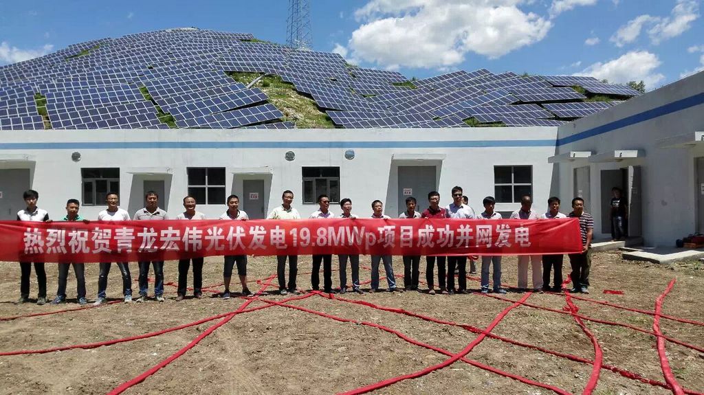青龙宏伟光伏电站工程项目建设规模为19.8MW,该项目隶属秦皇岛市青龙满族自治县七道河乡靛池子村,站址为山地地形,山体坡度较陡。2015年10月7日开工,2015年12月31号通过市质监站、2016年1月15日市电力公司验收,21公里外线已经全部竣工,于2016年1月31日成功倒送电。2016年6月7日通过电科院验收,2016年6月24日12个单元正式并网发电,年均发电量约27069.75MWh。