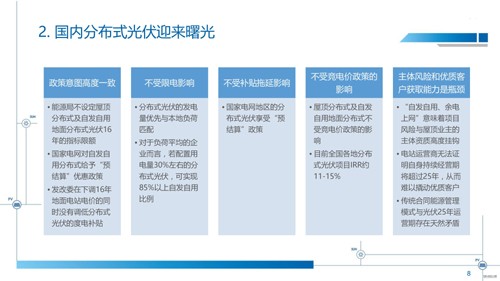 02分布式系统化协同在新能源占比持续提升的背景下,分布式光伏正逐步与分布式天然气调峰电站形成互补关系,共同承担区域电力系统的调峰、备用与稳定支撑功能。以晶澳为代表的高性能组件,正以稳定、高效、低衰减的输出能力,成为分布式光伏兑现长期收益、支撑零碳应用落地的关键底座。
