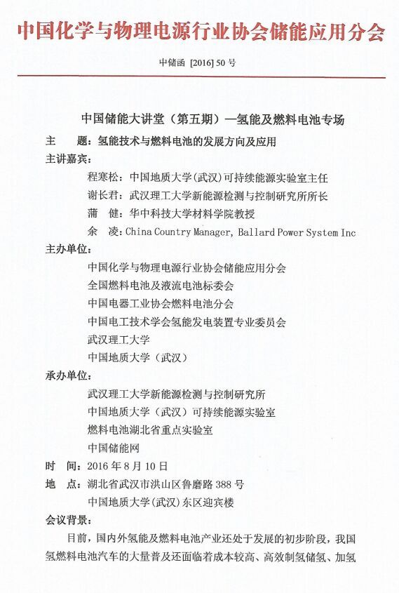 中国储能大讲堂(第五期)—氢能及燃料电池专场