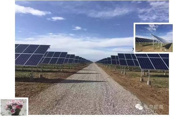 工程地点所处高原地势,4-6月项目现场环境正值风沙和雨季,昼夜温差较大、空气干燥稀薄。在这样的环境下,我们依然可见那满坡盛开着一簇簇被誉有草原罂粟之名的“狼毒花”,它昭示着生命活力,它以傲然姿态优雅而宁静的盛开着,与之睥睨的是那片美如冠玉的湛蓝光伏海,那情那景太过撩人心魄。