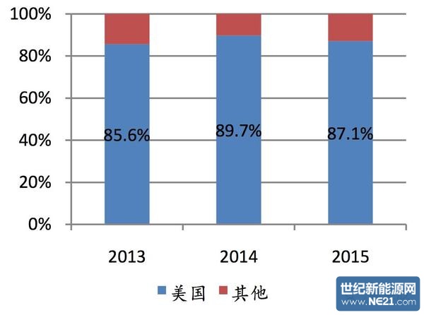 公司组件业务领域的主要竞争对手为中国公司,2014年全球组件出货量的三分之二来自中国。中国厂商产品全部为晶硅组件,同质化竞争严重,过剩的产能也压低了销售价格,但由于美国对中国光伏产品征收反补贴和反倾销税以对本土厂商进行保护,因此其对公司组件业务冲击有限。