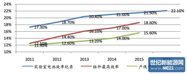 公 司在研发上的投入始终保持在业内最高水平,每年研发费用超过1亿美金。因此公司技术进步迅速,转换效率不断提升。在2011年以来,9次刷新CdTe电池 效率世界纪录,目前公司实验室小电池效率已达到22.1%,组件效率18.6%(均已超过多晶硅)。产线平均效率也由2011年的11.9%提高到 2015年的15.6%,已与主流多晶硅的转换效率相当(15.5%-16%),预计这一数据在2016年将继续提高至16.3%。