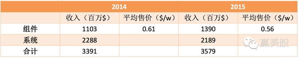 公司收入增长得益于组件出货量的增长,2015年公司组件出货量由2014年的1.8GW提高至2.5GW,增长率39%。但2015年由于组件平均售价下降了9%,因此组件业务收入增长率为26%。