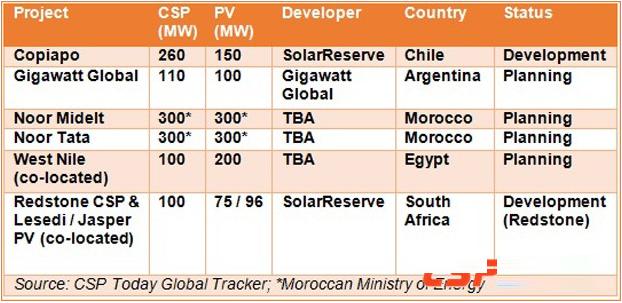 表:在开发或规划中的光热-光伏混合发电项目(2016年6月)