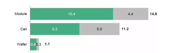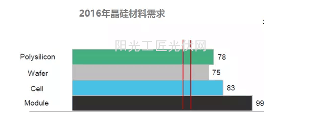 我们认为光伏价值链又会出现一轮产能过剩,尤其是组件,我们预计今年会出现至少15%的产能过剩。在上半年经历过供给紧缩后,生产商下半年将会面临供过于求组件价格将会承受很大压力。
