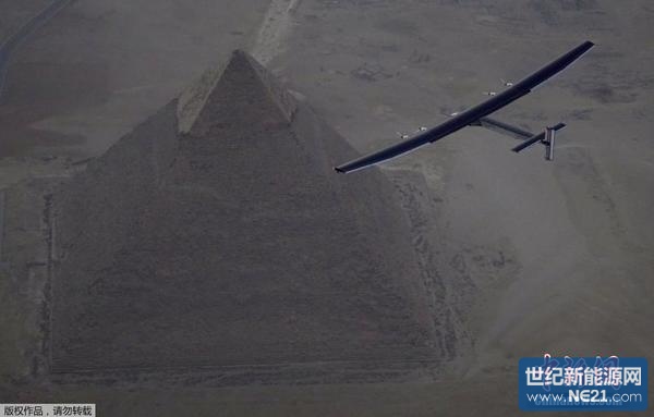 当地时间7月13日,瑞士飞行员驾驶的全球最大太阳能飞机“阳光动力2号”从埃及吉萨金字塔上空飞过,之后飞机在开罗国际机场降落。