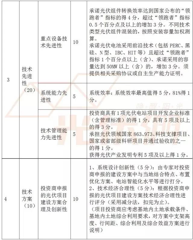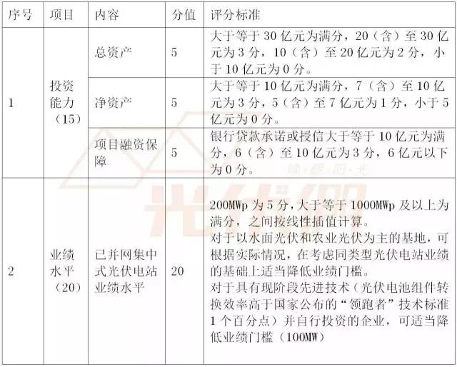 光伏发电领跑技术基地项目投资主体优选评分标准