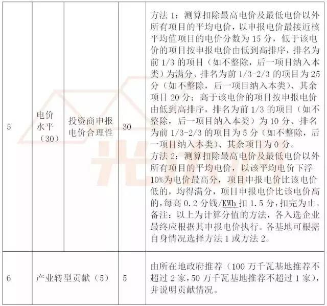 以下为国家能源局建议的光伏领跑者基地投资主体优选评分标准: