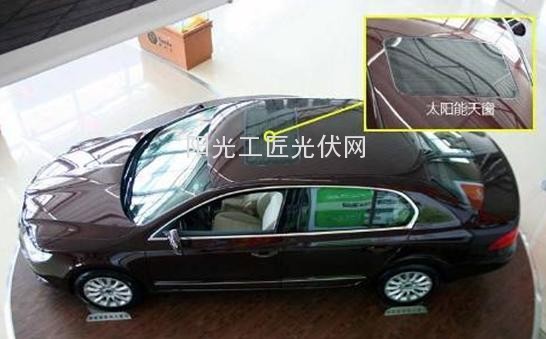 汽车天窗的玻璃下方设置有太阳能电池,太阳能电池与设置的控制单元输入端相连接,输入端连接车辆空调系统的温度传感器,同时输入端还与蓄电池和点火器相连接。玻璃下方的太阳能电池吸收太阳能,经汽车天窗控制单元可对蓄电池进行充电,保证蓄电池的电能充足,同时延长蓄电池的使用寿命。