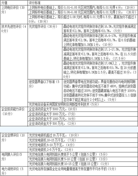 附件:内蒙古自治区普通光伏电站项目优选评分表