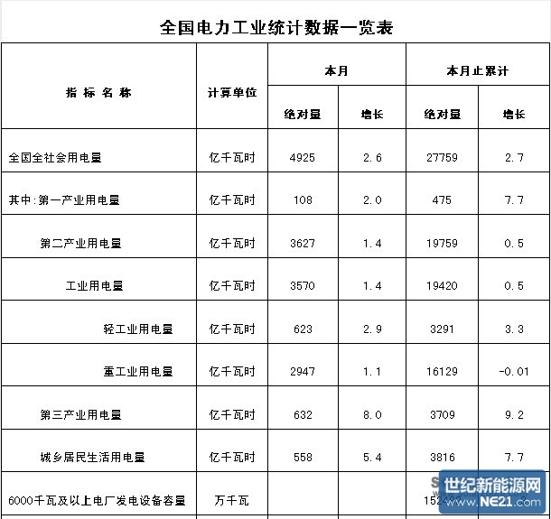 6月份,用电量4925亿千瓦时,同比增长2.6%。