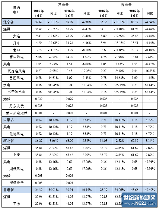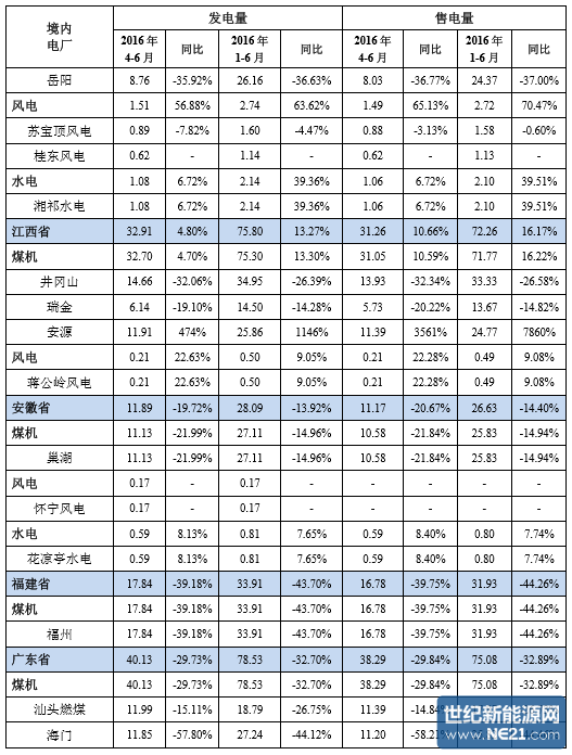 公司境内各运行电厂电量(以亿千瓦时计)具体如下: