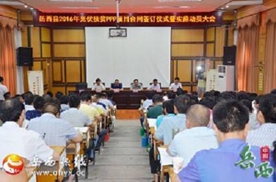 7月18日,安徽省岳西县2016年光伏扶贫PPP项目合同签订仪式暨实施动员大会举行。岳西县副县长方志国出席仪式并讲话。岳西县县直相关单位及各乡镇相关负责人参加。