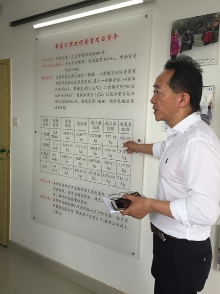 2015年底,当李础农向南梅园居民区党总支提出要引进光伏发电系统时,得到了大多数业主的同意,也得到了居民区、街道、普陀区发改委和上海市节能减排部门的肯定和支持。