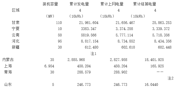 截止本季度末,各区域光伏电站累计电量数据情况如下: