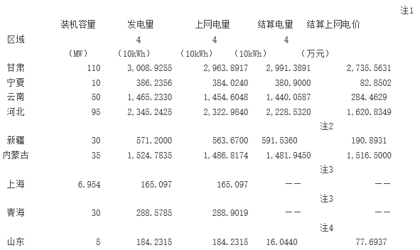 注1:上网电价包括出售给用户的电价、出售给电网的电价、国家补贴、地方补贴等几部分组成,每个单体项目的价格均不相同。