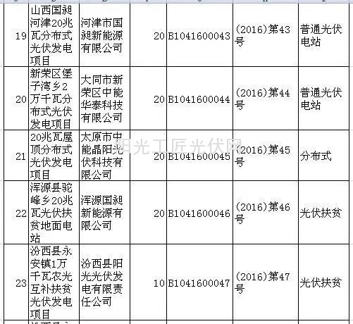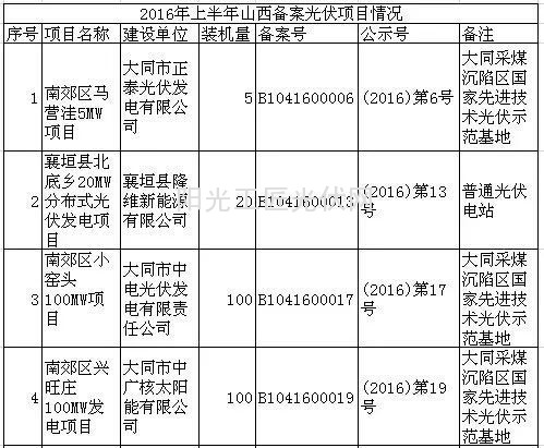 记者发现,此次备案的25个项目中,除了13个领跑者项目,1个不需要占用指标的屋顶分布式光伏项目,3个光伏扶贫项目,仅有8个共计230MW普通光伏电站项目需要普通光伏电站指标。据国家能源局国能新能[2016]166号文《国家能源局关于下达2016年光伏发电建设实施方案的通知》,规定2016年全年山西省新增光伏装机规模在700MW、位于山西阳泉采煤沉陷区光伏领跑技术基地规模1GW、芮城县光伏领跑者基地0.5GW,共计2.2GW。下半年,山西还有足够的指标,而明年基于阳泉和芮城的1.5GW领跑者项目,同样值得期待。