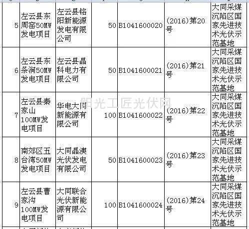 2015年6月19日,国家能源局向山西省发改委下发了《关于同意山西大同采煤沉陷区建设国家先进技术光伏示范基地的复函》,批准山西省大同采煤沉陷区为国家级光伏领跑者基地,建设目标1GW,同时要求此次批复的1GW新增光伏项目全部采用达到国家“领跑者”计划先进技术指标的光伏产品。截止至2015年7月,共计有33家企业投标50MW项目,23家企业投标100MW项目。