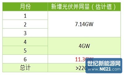 虽然中国国家能源局尚未公布今年第二季的正式并网统计数据,但根据媒体整理各项讯息所获得的结论,中国今年1-6月间的每月装机量分布如下(第一季数据为能源局数据):