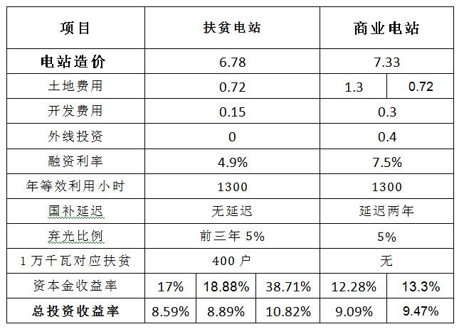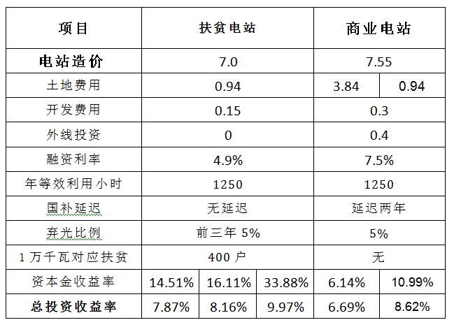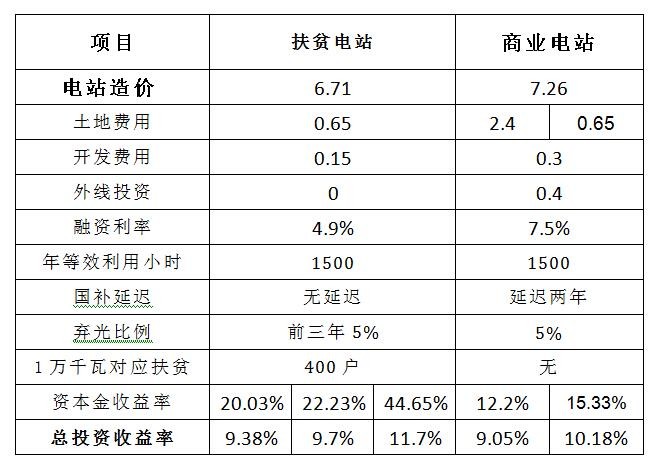 6)开发成本:扶贫电站,以及由此配套的商业电站,都按自开发模式;