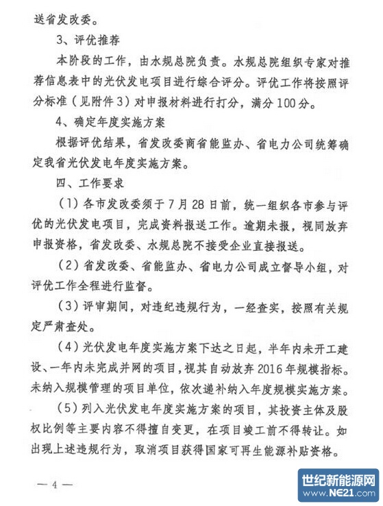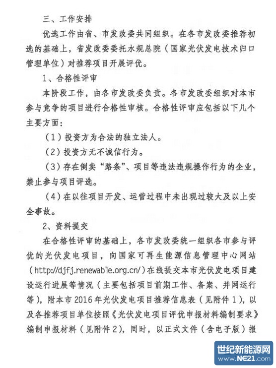 光伏电站竞争性配置规模指标工作的通知》,要求各市发改委须于7月28日前,统一组织各市参与评优的光伏发电项目,完成资料报送工作。