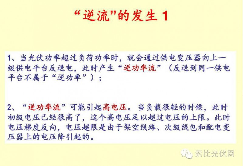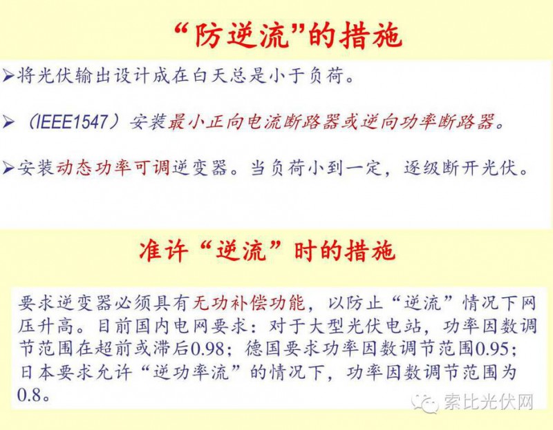 防逆流有几个措施。第一光伏设计在白天发电的时候总是小于负荷,当然要知道最低负荷率,至少要低于平均负荷率才能装这么大的能量。第二个要有最小正向电流断路器,一旦发生了逆流以后,减少切离。第三就是动态的功率变器。